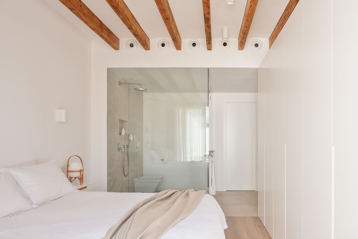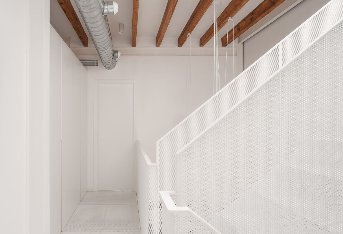Binissalem, pueblo del interior de Mallorca. Nos encontramos con una vivienda típica mallorquina de tres plantas, con la peculiaridad que tiene tan sólo 3,20 metros de fachada y 18 metros de profundidad. El interior es completamente oscuro debido a su configuración. Casa BUIT nace de la necesidad de "vaciar" este interior carente de luz natural y darle vida y amplitud a los espacios. Se vacía el interior mediante la demolición de los forjados intermedios y se crea un triple espacio con un lucernario en la cubierta, que dota de luz natural hasta la planta baja. La escalera es blanca, metálica, ligera, transparente, es un elemento escultórico que dignifica la entrada de luz, tan importante en este proyecto.